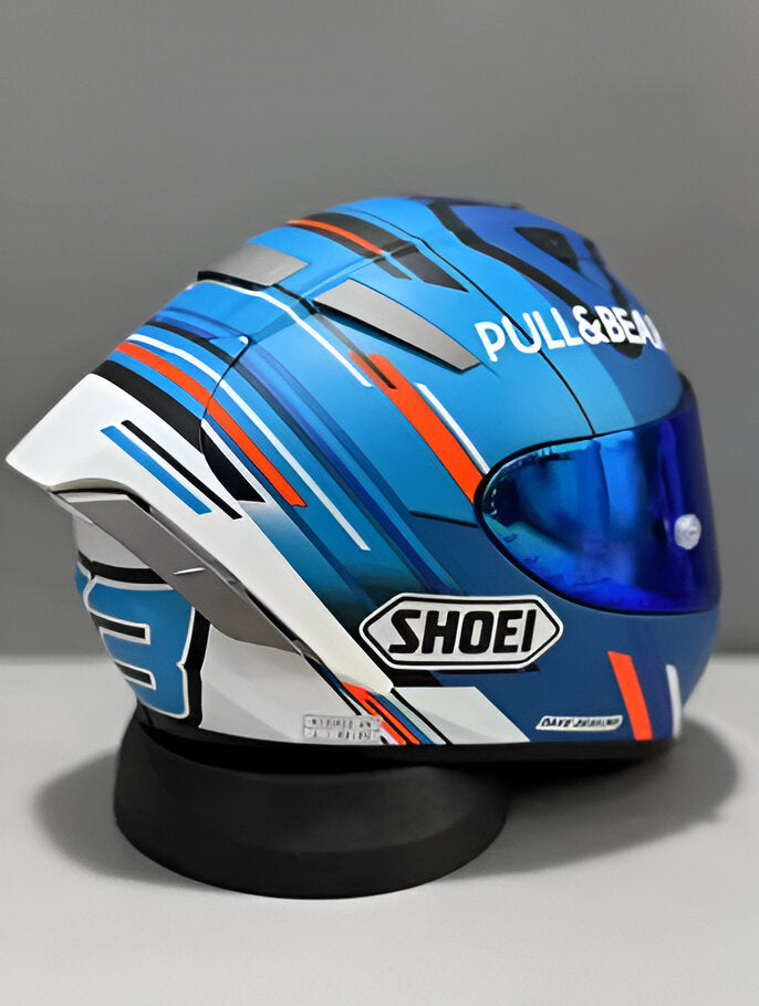 Este diseño exhibe una combinación de colores vibrantes, incluyendo el Azul característico de Alex Márquez y detalles en blanco , negro y naranja. Los patrones geométricos aportan dinamismo y una modernidad única. (ENVIÓ GRATIS)